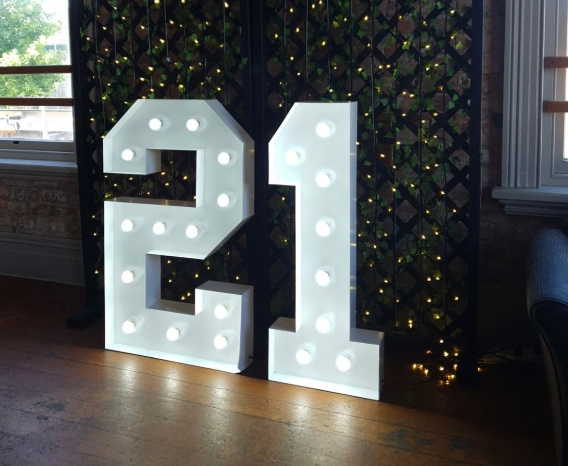 Light up your 21st celebration in style with these stunning white marquee lights!