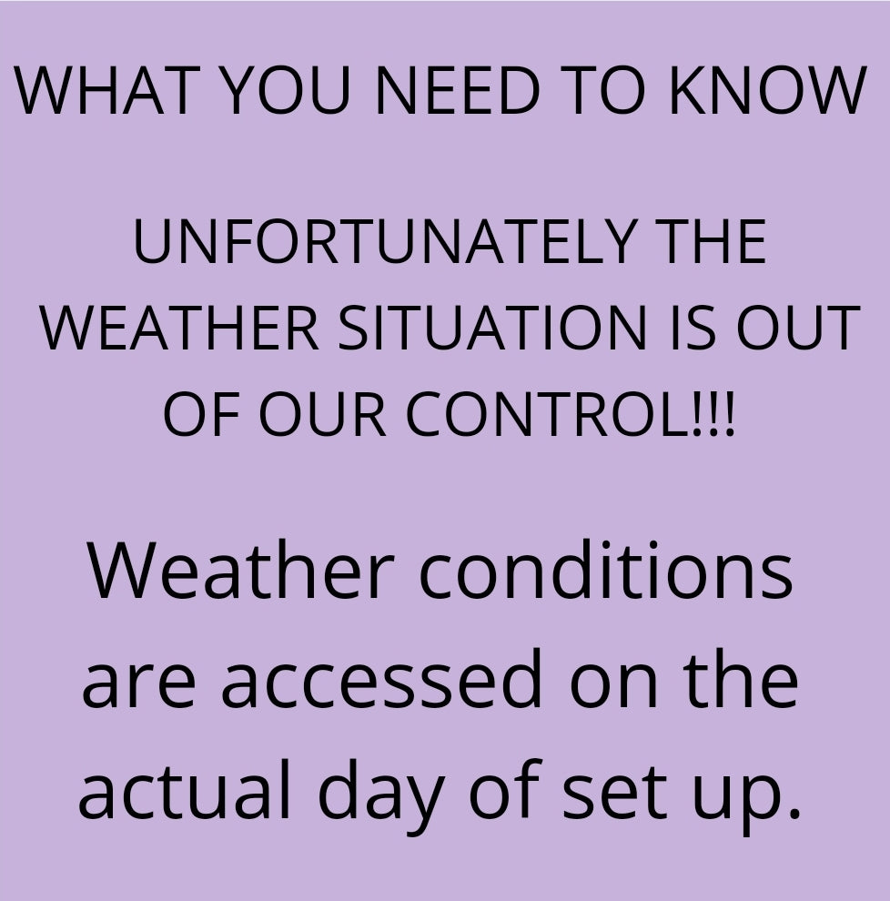 - Early installation before 9am or pack down after 6:30pm incurs a $55 inconvenience fee.