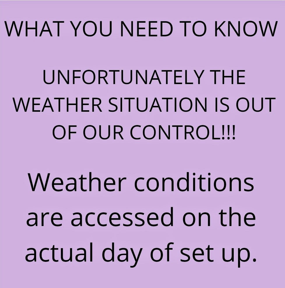 - Early setup before 9am or pack down after 6:30pm incurs a $55 fee.